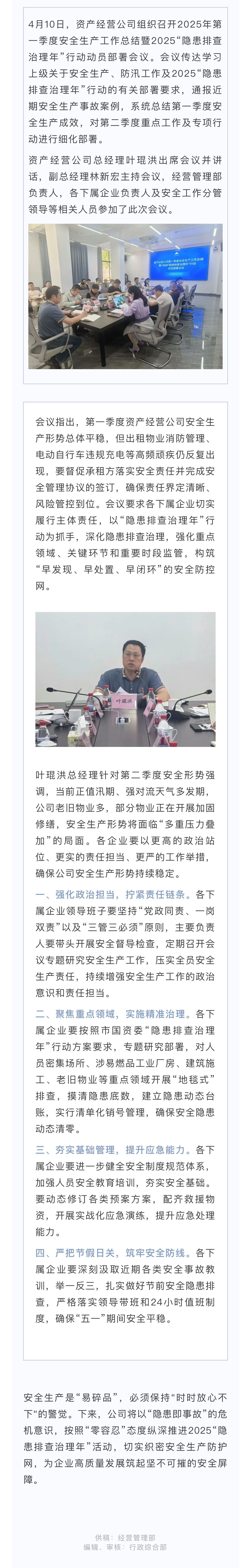 安全生产|资产经营公司召开第一季度安全生产工作总结暨2025“隐患排查治理年”行动动员部署会议