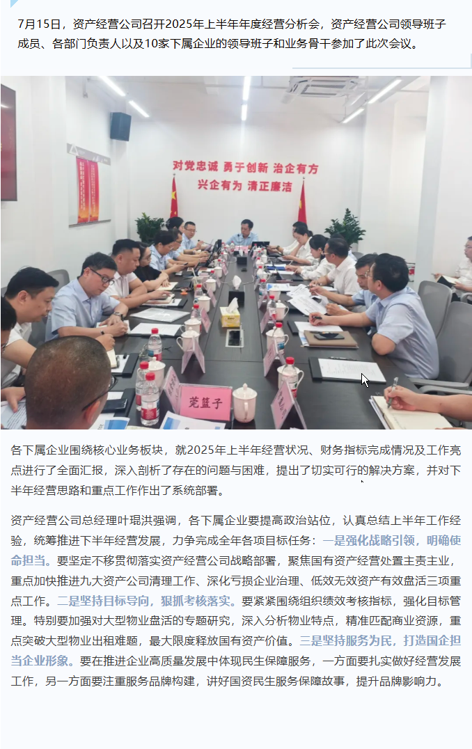 锚定战略担使命 聚力攻坚启新程|资产经营公司召开2025年上半年度经营分析会议