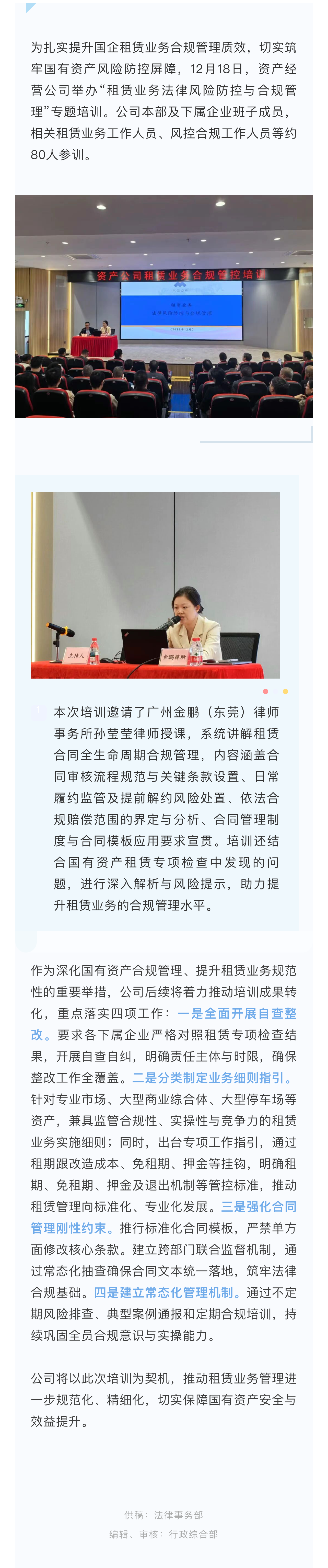 筑牢租赁合规防线——资产经营公司开展租赁业务合规管控培训