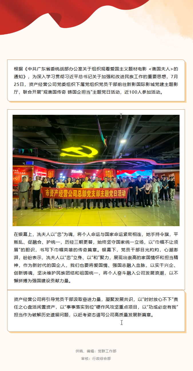 资产经营公司党委组织党员干部观看爱国电影《谯国夫人》