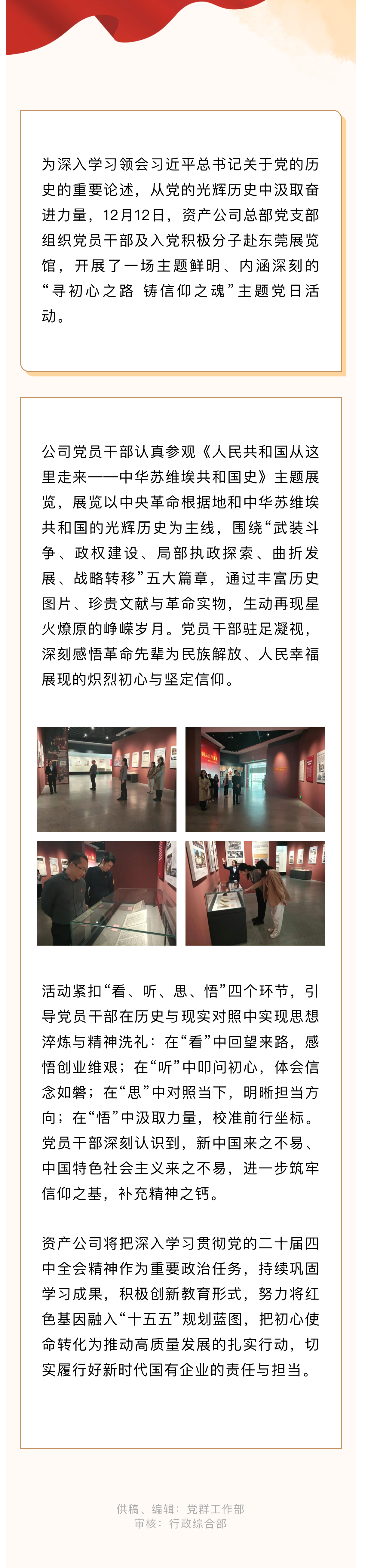 资产公司总部党支部组织党员干部参观《人民共和国从这里走来——中华苏维埃共和国史》主题展览